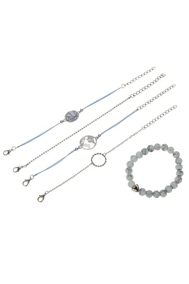 Set 5 bratari argintii, cu margelute bleu, Trixy C2,