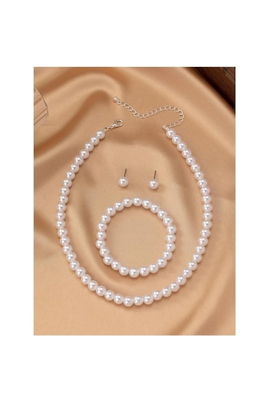 Set colier, bratara si cercei, argintiu, cu perle, Aija C24
