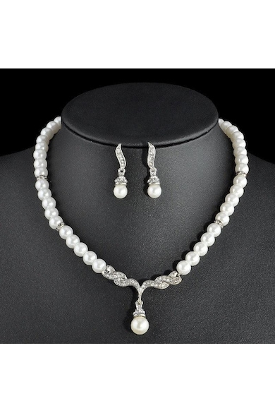 Set colier si cercei, argintiu, cu perle si pietre, Osvald C19