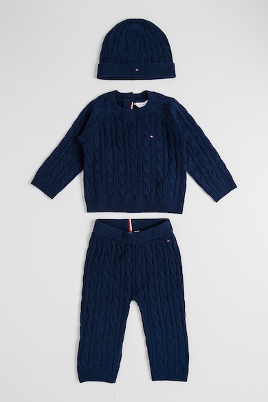 Set de bluza, pantaloni si caciula cu model torsade - 3 piese