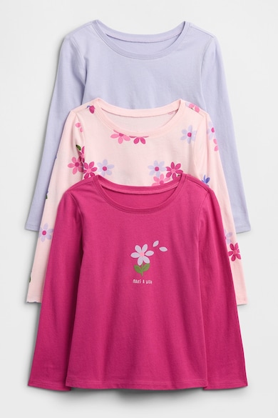 Set de bluze din bumbac cu decolteu rotund - 3 piese