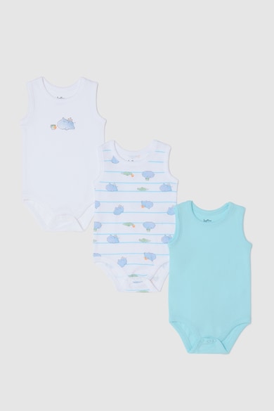 Set de body-uri cu imprimeu si decolteu rotund - 3 piese