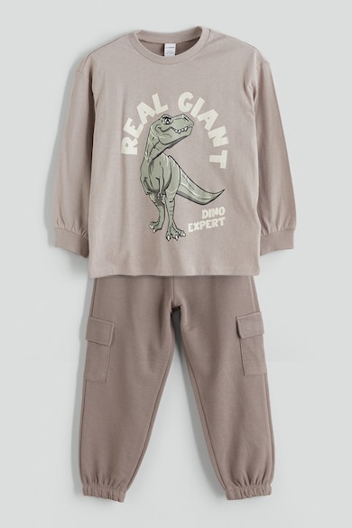 Set de pantaloni jogger si bluza de trening cu imprimeu dinozaur