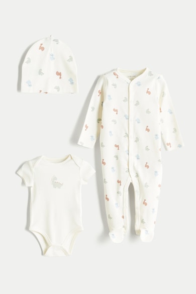 Set de salopeta pentru copii cu botosei, body si caciula - 3 piese
