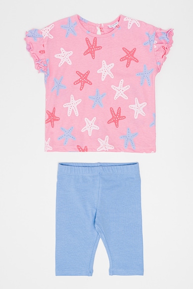 Set de tricou cu model si colanti scurti uni - 2 piese