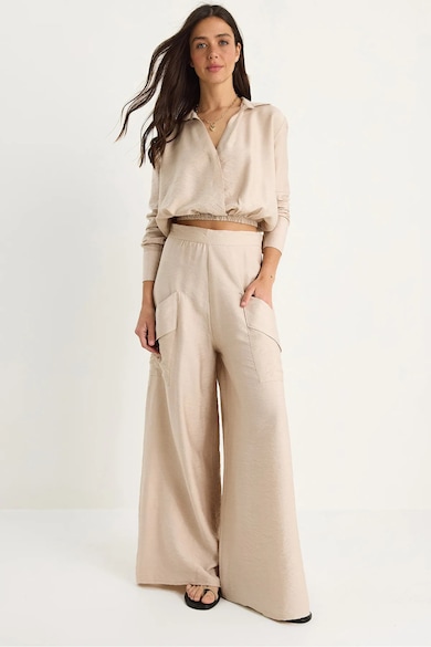 Set două piese hanorac scurt și pantaloni largi bej