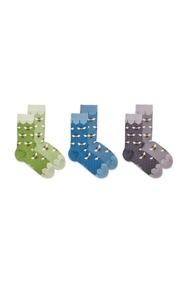 Sosete bambus BOX 3 FINE BAMBOO Bees - Green Turquoise Grey