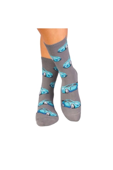Sosete din bumbac organic cu Masina Sport Gri