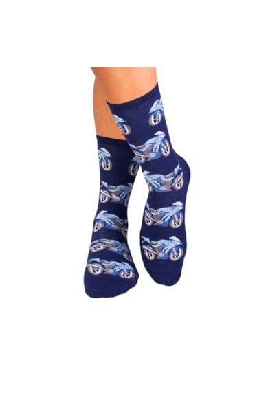 Sosete din bumbac organic cu Motocicleta Albastru inchis