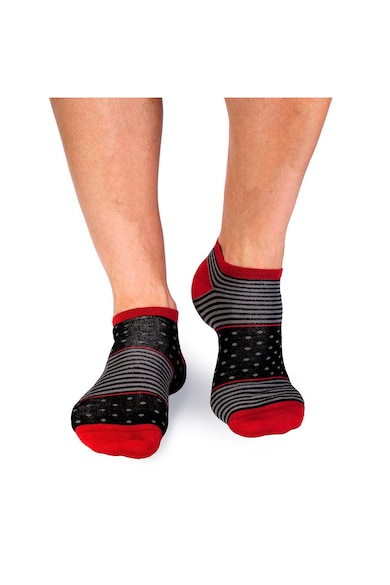 Sosete scurte bambus FINE BAMBOO cu buline si dungi negru gri