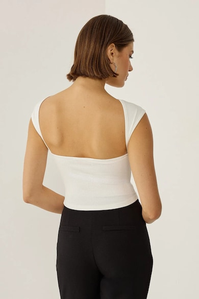 Top scurt crop cu deschis, alb, bumbac