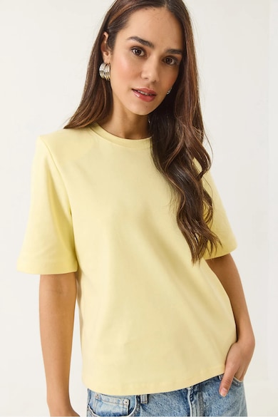 Tricou dama guler rotund, captusit, galben, bumbac