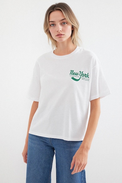 Tricou dama guler rotund, croiala lejera, alb, bumbac