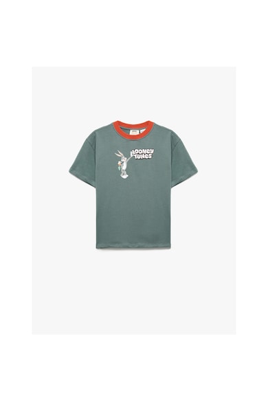 Tricou de bumbac cu decolteu la baza gatului si desene